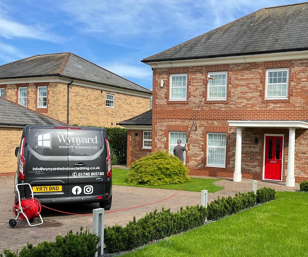 We are a local, family run business serving Wynyard, Hartlepool and the Tees Valley Area. Our method of cleaning involves a ‘Reach and Wash’ system which uses purified water through an extendable water fed pole leaving sparkling streak-free windows.